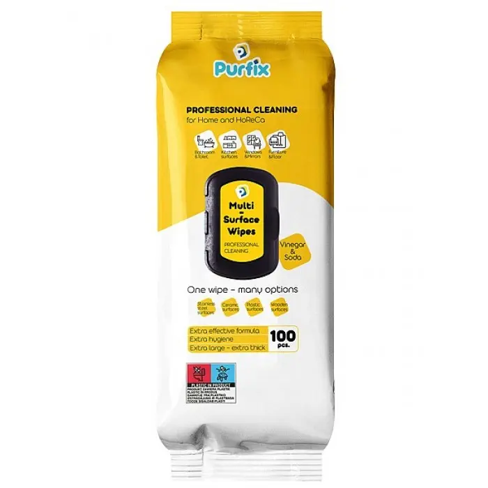 Purfix — це зручне рішення для швидкого очищення будь-яких поверхонь без зусиль. Завдяки посиленій формулі з оцтом та содою, серветки ефективно видаляють пил, жир і забруднення, не потребуючи додаткових мийних засобів.