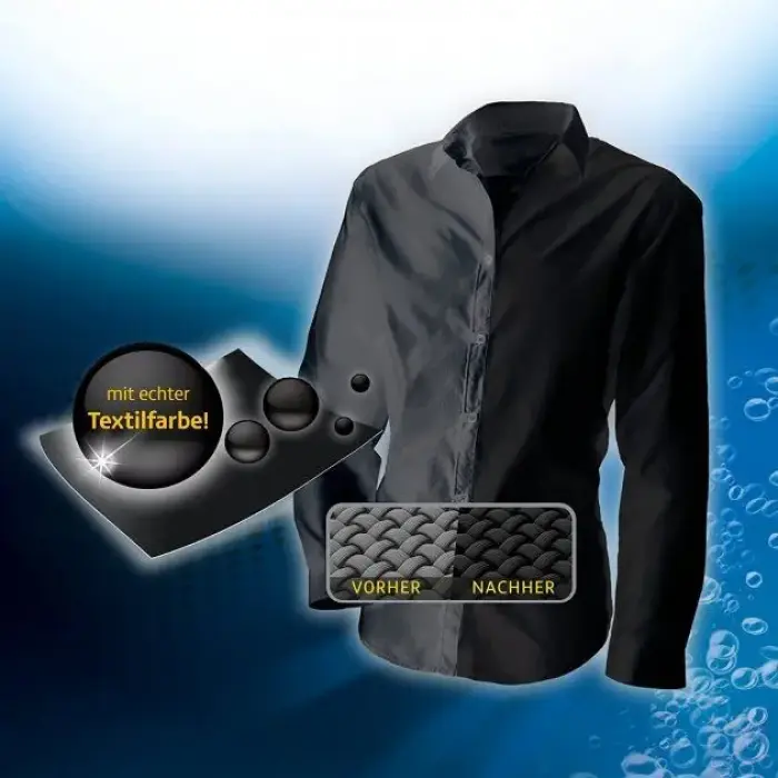 Серветки з інноваційною формулою догляду за кольором та волокнами тканини відновлюють чорний колір одягу під час звичайного прання. Тканини зберігають свій інтенсивний чорний колір та доглянутий вигляд із мінімальними зусиллями. Підходить для всіх видів тканин, які можна прати. Рекомендується використовувати лише для чорного текстилю. Синтетичні матеріали не піддаються фарбуванню, тому такого типу аплікації принти залишаться своїм першочерговим кольором.